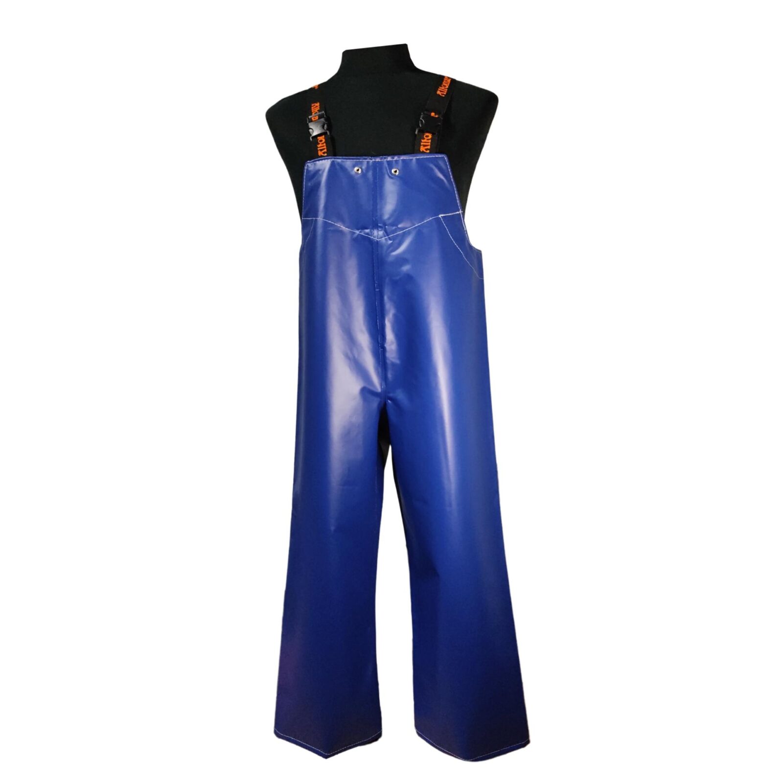Calça pescador bicolor sem reforço, com elásticos tipo suspensórios e fivelas de encaixe para facilitar o ajuste.