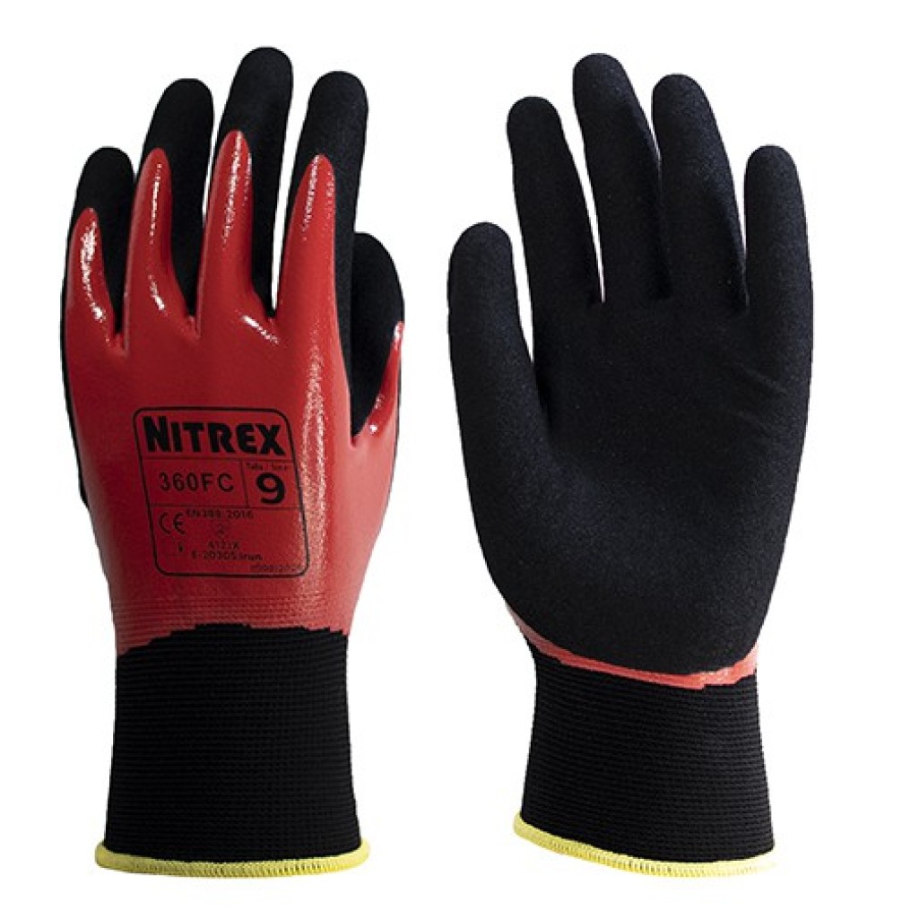 Luva em poliamida e Spandex com forro leve e duplo revestimento em nitrilo liso/espuma de nitrilo. Uso geral em ambientes muito húmidos e oleosos e onde é preciso a máxima aderência.