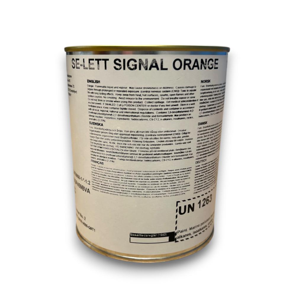 Jotun Se-lett Laranja é um acabamento alquídico monocomponente laranja, refletor de luz, para placas de advertência e onde for necessária alta visibilidade. Para melhores resultados e estabilidade UV duradoura, aplique uma camada final com o verniz Selett Clear.